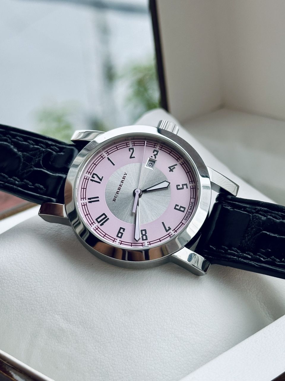 Siêu phẩm đồng hồ nữ Burberry chính hãng Thuỵ Sỹ. Sử dụng máy quartz Thuỵ Sỹ cao cấp nguyên zin chạy chuẩn. Chất liệu Stainess Steel solic, kính Saphire, chống nước tốt . Dial hồng nguyên zin đẹp mê. Dây da cá sấu xịn handmade + khoá zin hãng. Size 32mm e giao lưu chỉ ĐÃ BÁN cho siêu phẩm