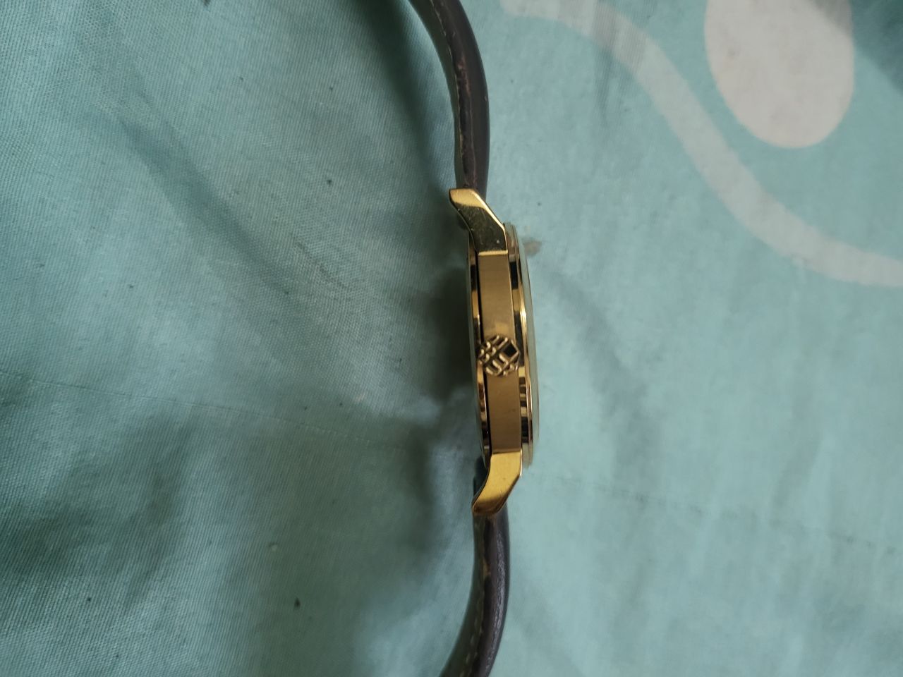 Đồng hồ nguyên bản toàn bộ cả dây khóa, size 38. Con này vàng hồng và mạ rất tốt và dày nên trông như vàng khối. Trước em mua hơn 12 triệu. ĐỒng hồ bên ngoài đẹp hơn ảnh nhiều ah. Lúc em chụp hơi thiếu sáng. Em là người dùng, thích đồng hồ. Bác nào cần thì liên hệ em trực tiếp ah. Giá 4tr5.