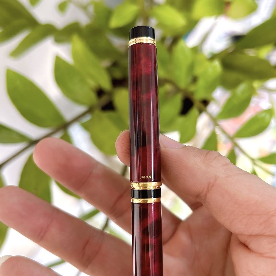 Bút máy hiệu PILOT chính hãng Nhật sản xuất nguyên zin 100%. Toàn thân vân sơn mài đỏ đen đờ mi vàng rất đẹp, khoen cài vàng. Trên thân có đóng hiệu PILOT JAPAN.