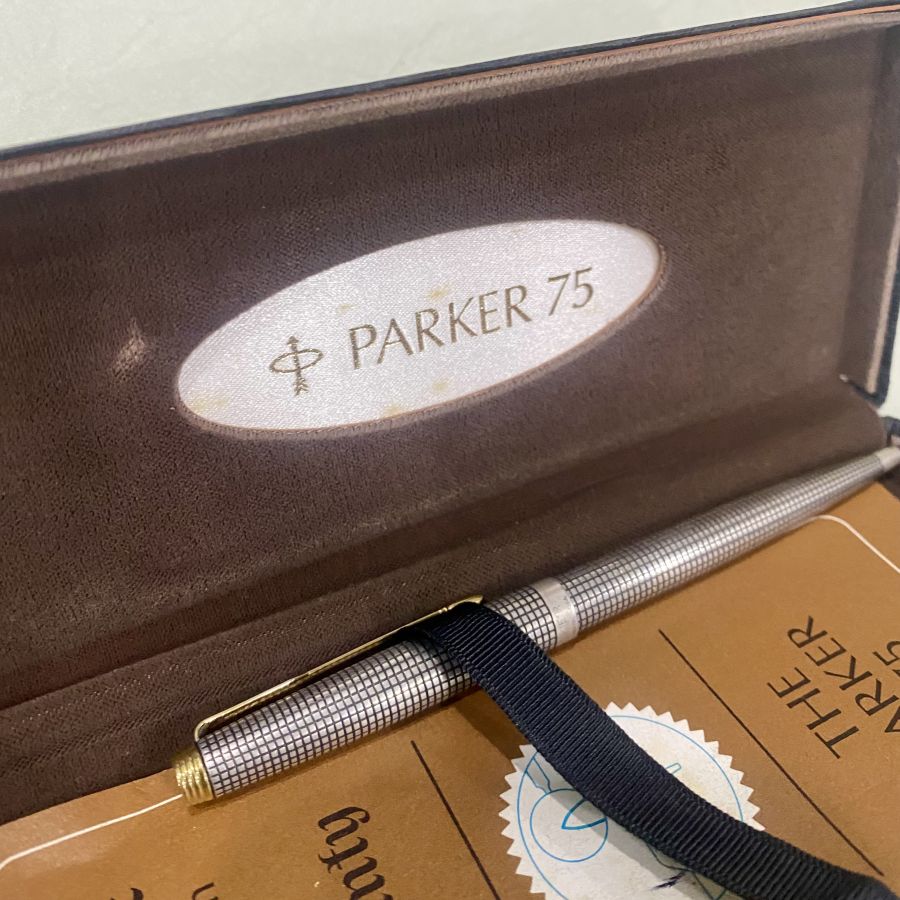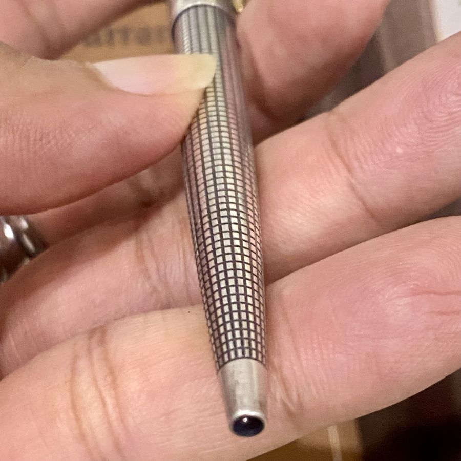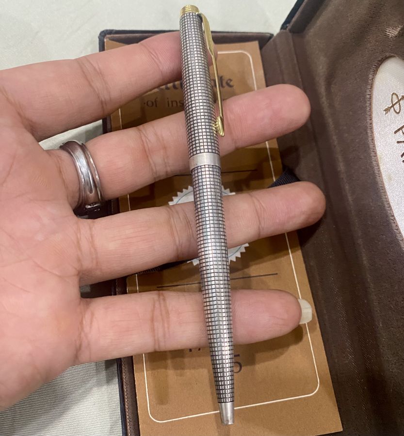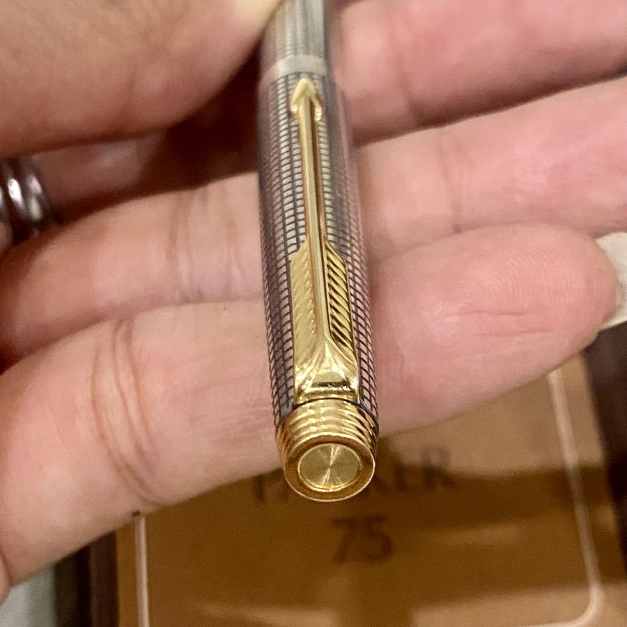 Bút Parker Cap Barrel made in U.S.A. Cổ điển, bạc, thân bút viền vàng. Tình trạng không cấn móp.