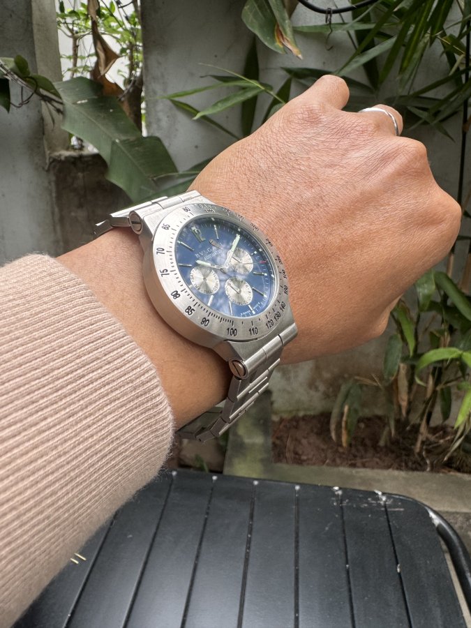 - Size: 40 chưa núm - Máy trắng chronograph- Kính thường - Dây khoá Zin 🚰 Chống nước: 50 M ⏰ Hình thức 98% 💰- 1tr299 ( KO hộp )