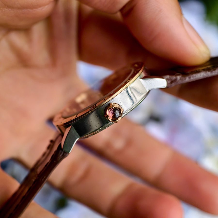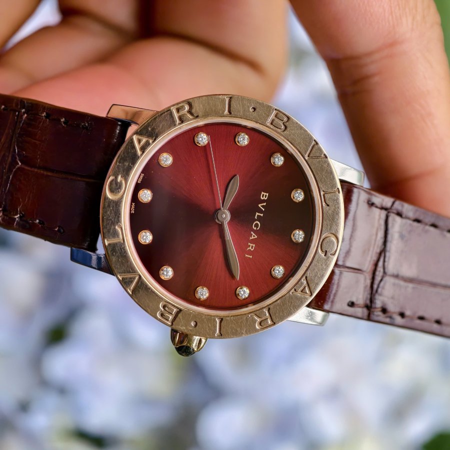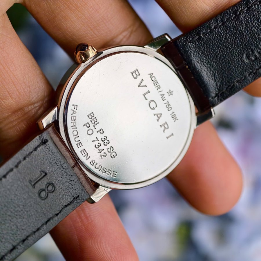 Bvlgari BBL P 33 SG Vỏ demi vàng hồng 18k Mặt chocolate cọc số đính kim cương Size 33mmMáy automatic Khoá zin vàng trắng đúc 18k Có hộp đi kèm