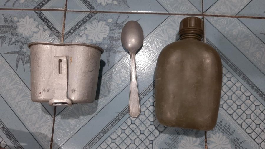 Em giao lưu 3 món kỹ vật còn sót lại sau 75 gồm ca nhôm + muỗng nhôm và bình tông nhựa QL****. Tất cả 3 món còn sài tốt