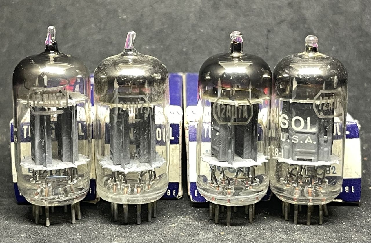 . Bóng 12AU7/12AU7A Tung-Sol U.S.A long plate 17mm, móng ngựa Getter. Bóng NOS mới 100%.