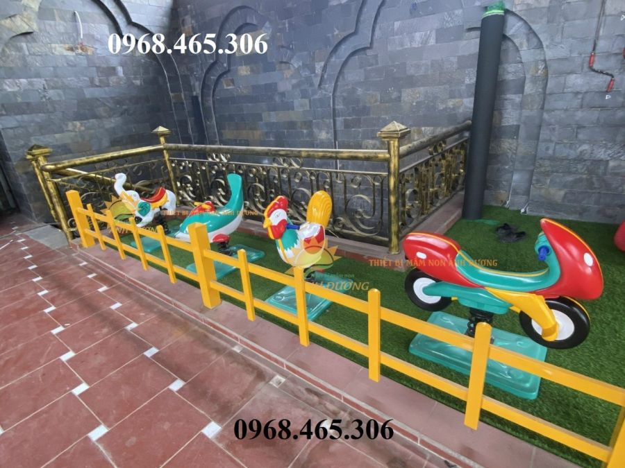 Thú nhún lò xo được làm từ chất liệu nhựa composite,kết cấu chắc chắn, an toàn, cực kì bền bỉ với điều kiện khí hậu Việt Nam, đảm bảo an toàn cho các bé