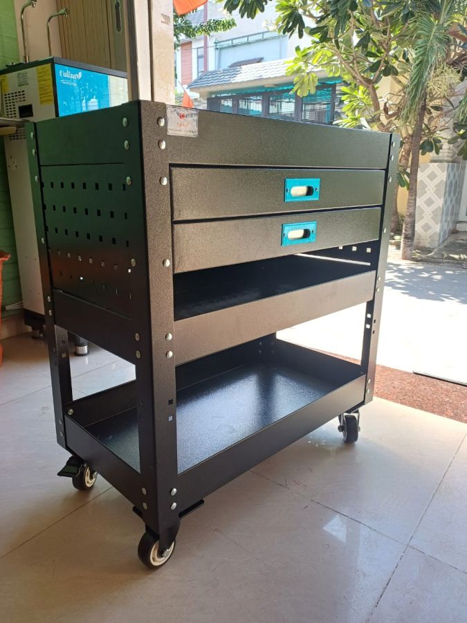 Các mẫu tủ đồ nghề, xe đẩy dùng cho sửa chữa honda, Xe đẩy 3 tầng 2 ngăn kéo , Xe đẩy dụng cụ 2 tầng, 2 ngăn được sử dụng trong các nhà máy bảo trì, trạm bảo dưỡng máy móc, tiệm sửa xe máy, gara ô tô. Sản phẩm được dùng để đựng dụng cụ sửa chữa, dụng cụ cầm tay, đồ nghề xe máy, đồ nghề cơ khí, thiết bị gia đình.
