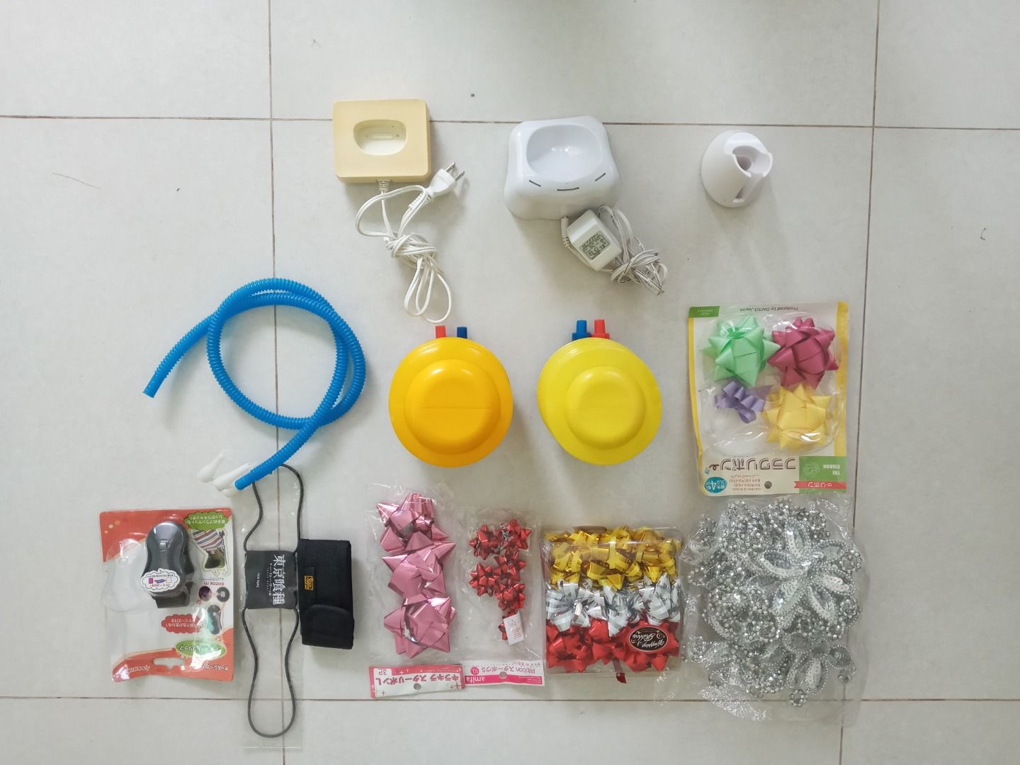 Hàng khui kiện, hoa trang trí, 2 bơm hơi bong bóng có 1 dây, 3 cục sạc gì không rõ....giá 80k, không bao ship