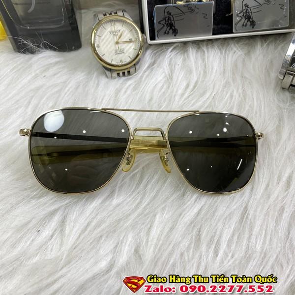 Gọng kính: Gọng kim loại mạ vàng nhẹ, logo American Optical khắc rõ ràng, sắc nét.