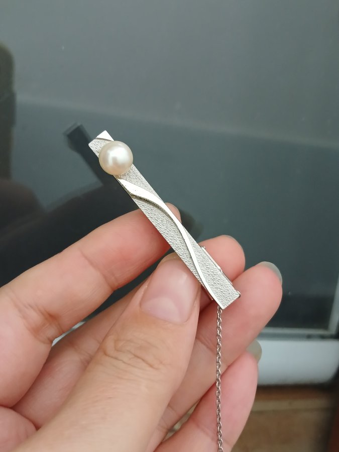 Cài áo bạc đính ngọc trai Akoya ánh hồng 8 li.