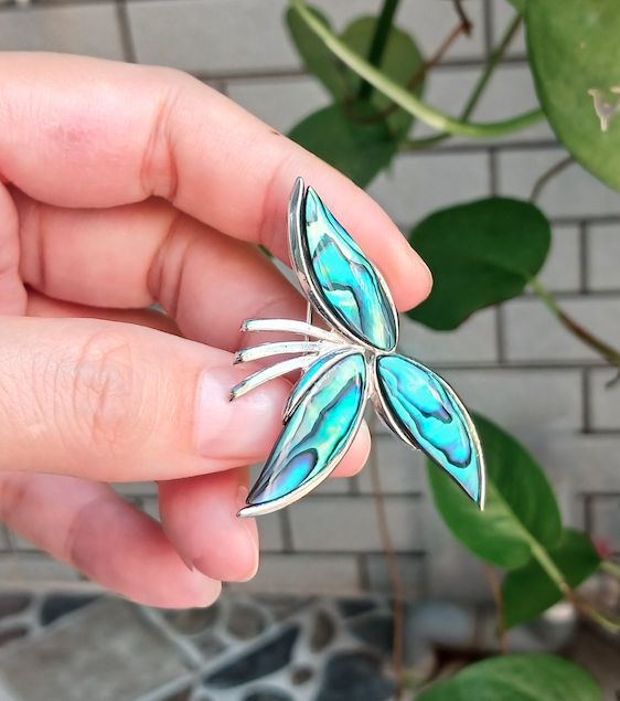 Cài áo bạc đúc ốp xà cừ màu xanh đẹp lạ