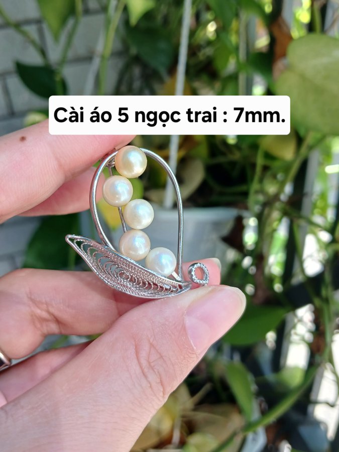Cài áo đính 5 viên ngọc trai Akoya