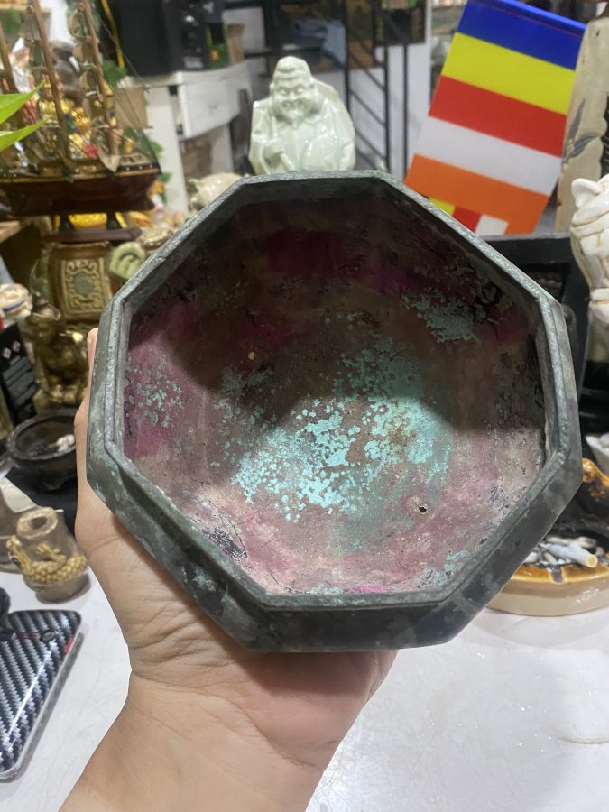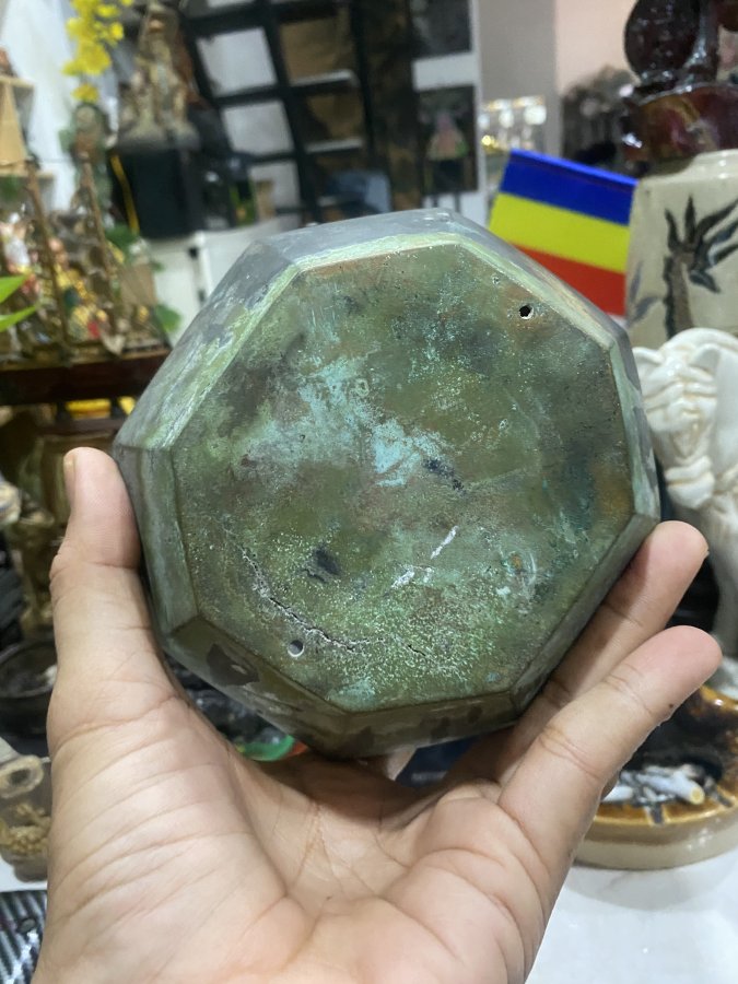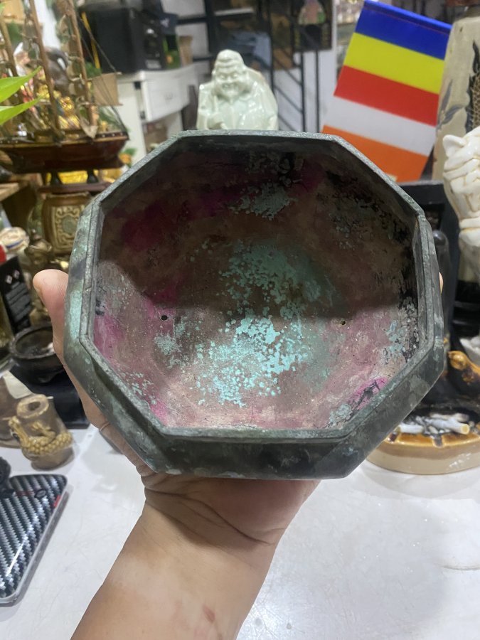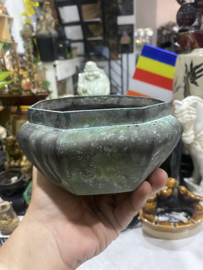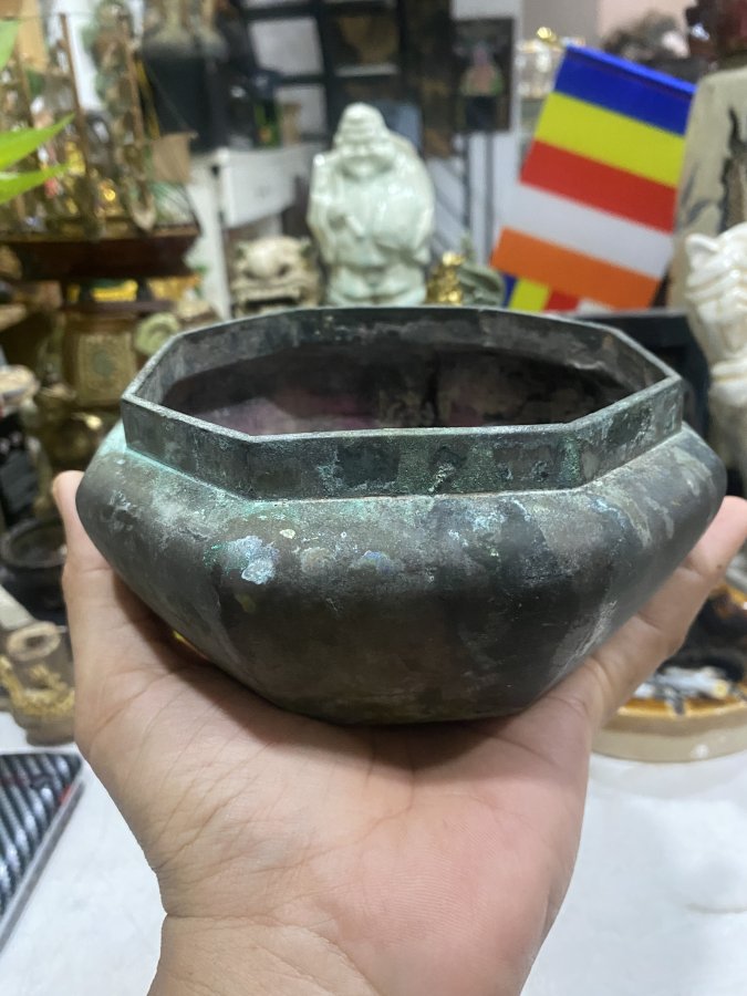 Giá bán : 450.000 vnd Cái Bát 8 Cạnh , Chất Liêu Đồng Xưa Tình Trạng Còn Nguyên vẹn , Xuống Màu Thời Gian Kt : 12cm ( Chiều Ngan ) , 11cm ( chiều Dọc ) , 8cm ( Chiều Cao ) 0913175933