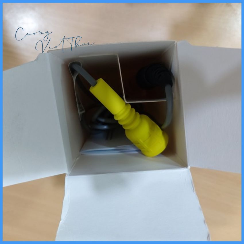 Thân cảm biến bằng nhựa, đường kính 12mm, dạng trơn nhẵn, và được trang bị sẵn lớp bảo vệ bóng đèn.