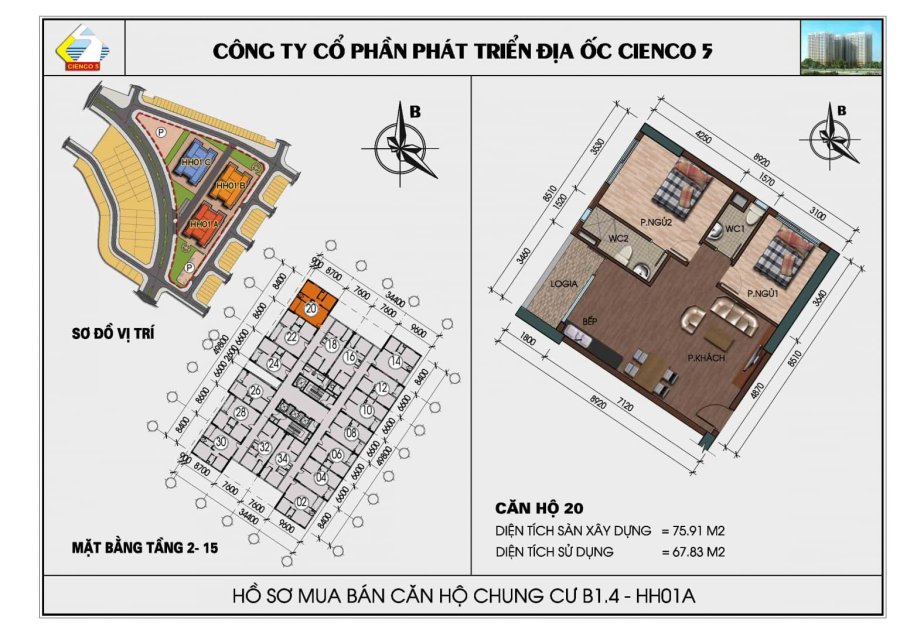 🏢 Căn góc – Tầng 14 – Diện tích 76m²