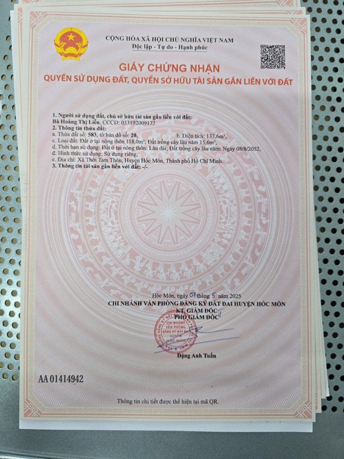 . Dt : 5,6m x 24m scn 135m thổ cư 120m.