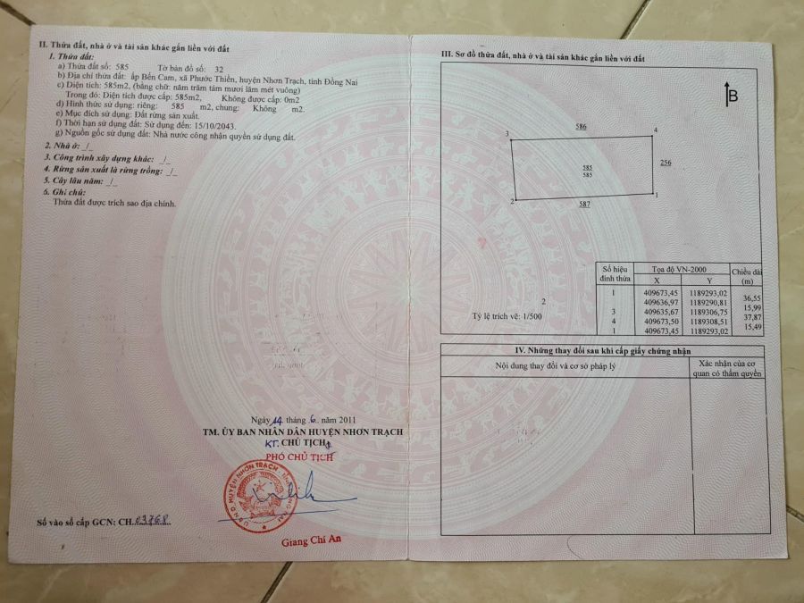 Cần bán gấp lô đất đẹp 585m2 tại Bến Cam, xã Phước Thiền, Nhơn Trạch.