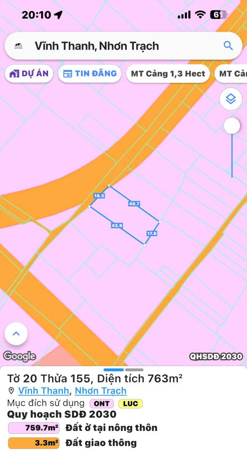 - Diện tích đất : 763m2 ( 18m x 42m ) - có sẵn 418m2 Thổ cư.