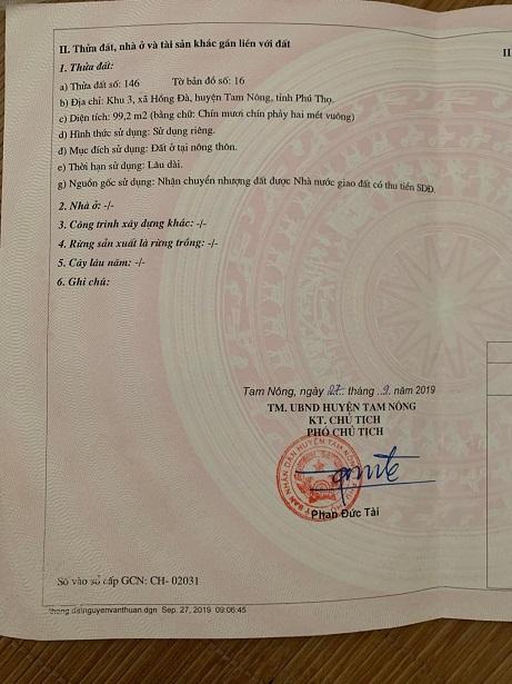 CẦN BÁN LÔ ĐẤT ĐẸP TẠI HUYỆN TAM NÔNG - TỈNH PHÚ THỌ