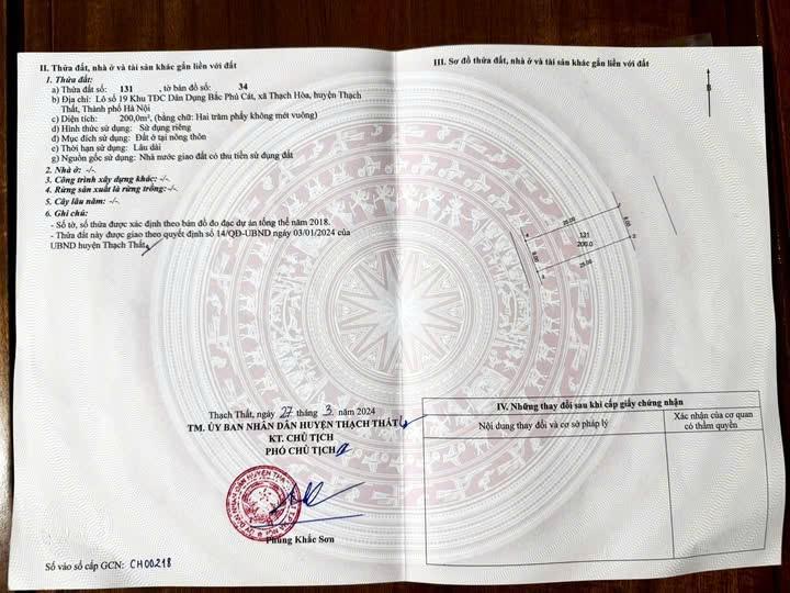 - Vị trí : gần UBND và ******** xã THẠCH HOÀ, Thạch Thất, Hà Nội