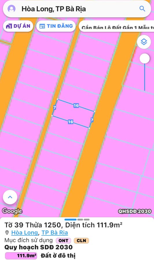 - Diện tích: 7m x 16m = 112 m2 (Thổ cư 80 m2)