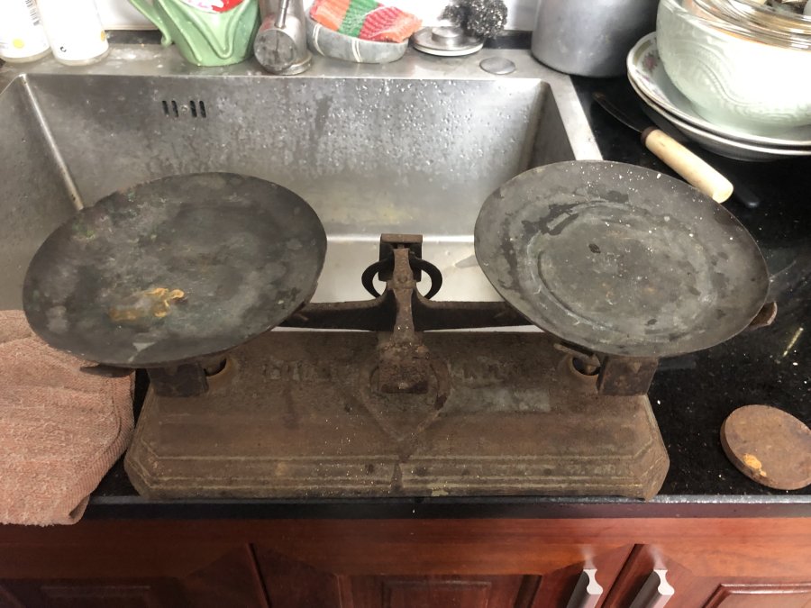 Cân bập bênh xưa thời Pháp 1kg, sài tốt ( tặng 4 cục cân như hình): 1tr + ship