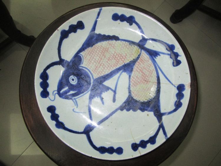Cần giao lưu 1 đĩa cá huyết đỉa rất đẹp đường kính 25,5cm, bị tóc 2 đường như trên hình, đít mộc, đồ chuẩn cổ, kính phố ( các bác giao lưu xin gọi điện thoại trực tiếp)
