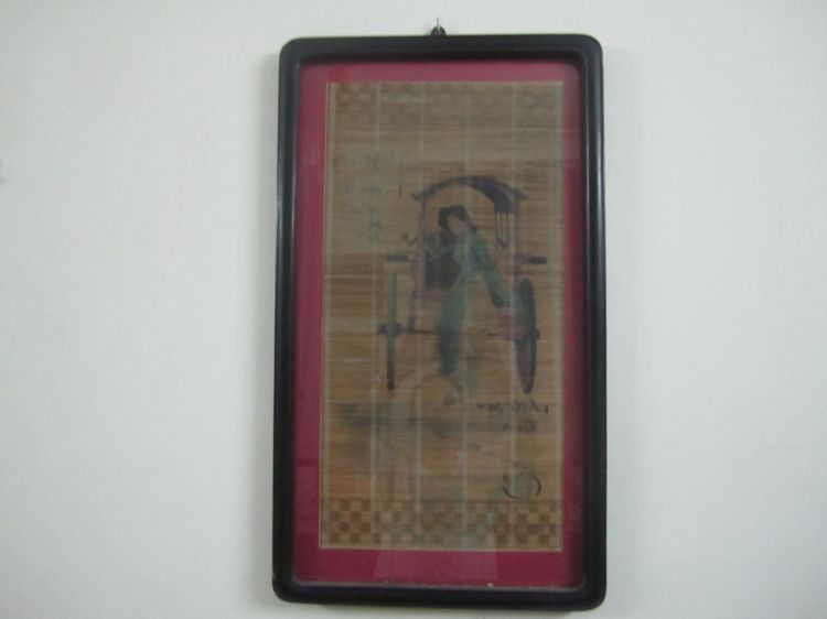 Cần giao lưu một bức tranh vẽ trên chất liệu mành tre rất đẹp đã có tuổi thời gian, vẽ cảnh thiếu nữ ngồi trên xe, chiều dài 72,5cm, chiều ngang 42cm, đăng lên cho bác nào cần. Kính phố ( các bác giao lưu xin gọi điện thoại trực tiếp)