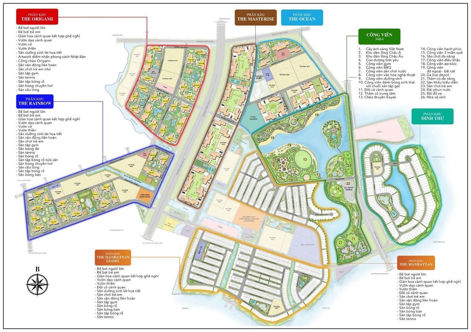 Tổng diện tích khu đất phân khu Căn Hộ THE ORIGAMI: 25,4 ha, gồm có:
