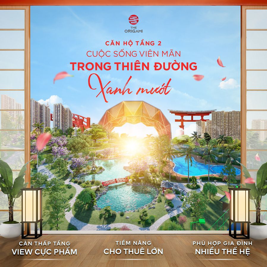 - THE ORIGAMI được thiết kế mang đậm phong cách cổ kính xứ sở Hoa Anh Đào – Nhật Bản, với quy mô rất hoành tráng.