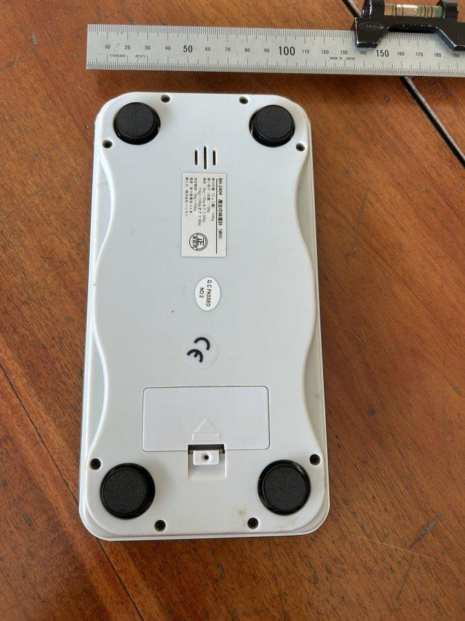 Bán 1 cân sức khỏe hàng xuất Nhật còn rất đẹp. Cân thiết kế nhỏ gọn, mặt kính cường lực thẩm mỹ, chắc chắn. Cân sử dụng 2 pin AAA, có mực sử dụng từ 3-150kg, mặt số điện tử tự động hiện và tự động tắt, bước nhảy 100g, sai số từ 200-300g