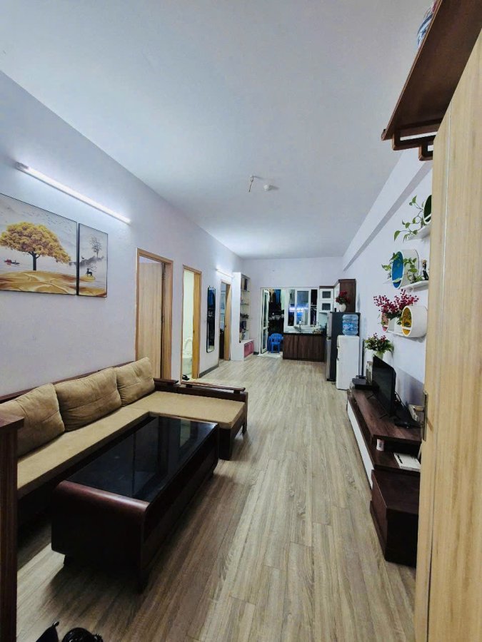 Diện tích căn hộ 65m2, thiết kế 2 phòng ngủ, 2 vệ sinh, phòng khách, bếp, ban công hướng Nam thoáng mát view nhìn liền kề.