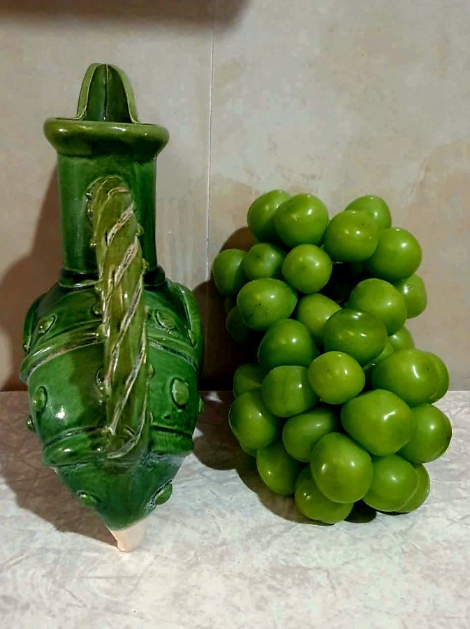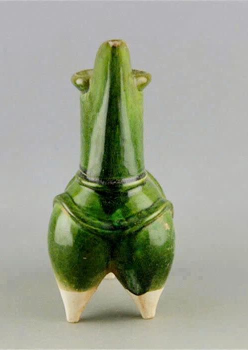 Cao 22cm*17,5cm*9,5 cm. Tước ******* tam túc men lục. 1650k