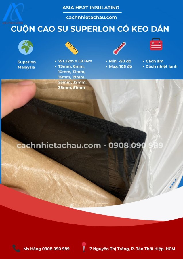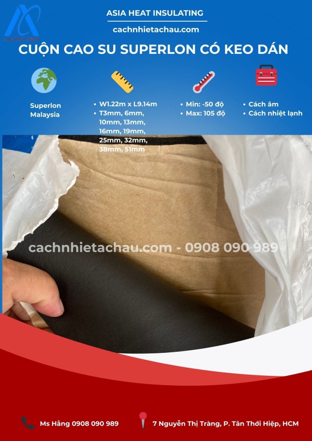 Cao su lưu hoá hiệu Superlon có keo dán, cách nhiệt lạnh