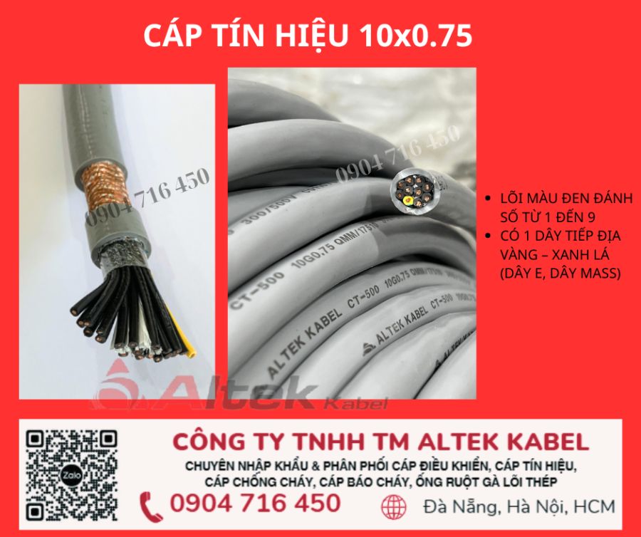 Công ty TNHH Altek Kabel Việt Nam chuyên cung cấp Cáp điều khiển 10 lõi, tiết diện 0.5mm2, 0.75mm2, 1.0mm2, 1.5mm2.