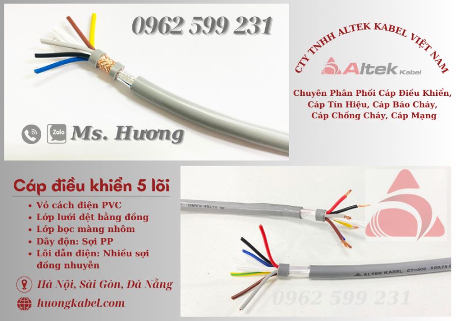 Quy cách: 5 lõi, tiết diện 0.5-1.5mm2