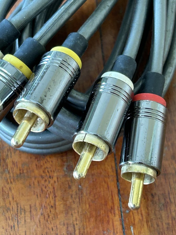 Bán sợi cáp AV Fuji còn rất đẹp, dây mềm mại, các đầu jack kim loại còn vàng óng, dây dài 2m. Rất thích hợp cho các đầu Tape Video VHS, âm thanh và hình ảnh chất lượng