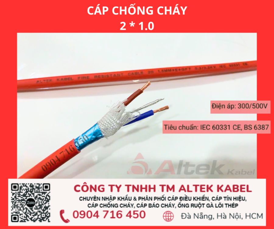 • Cáp chống cháy Altek Kabel được sản xuất theo các tiêu chuẩn quốc tế như: BS 6387, IEC 60331 về khả năng chịu lửa.