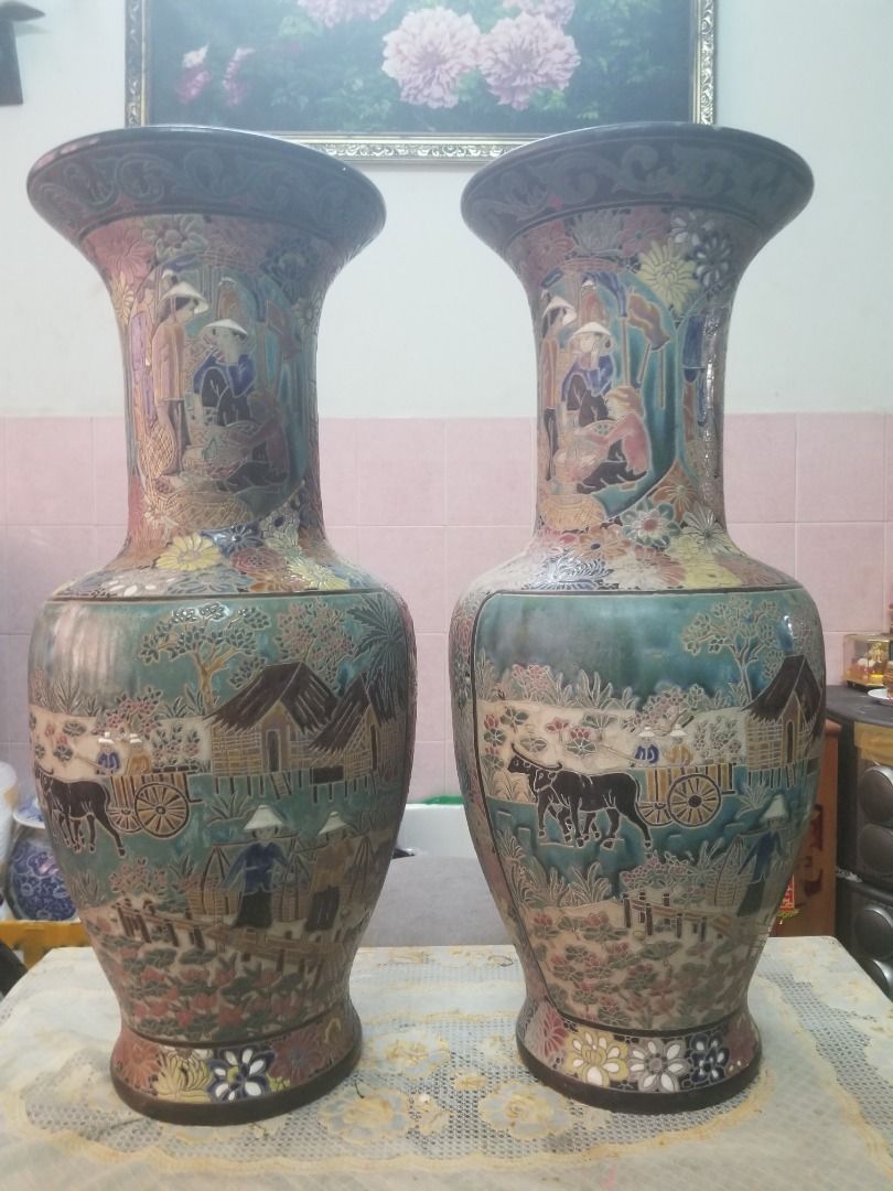 Cặp bình Biên Hòa cảnh chợ làng quê .Cao 85cm.Lành tuyệt đối