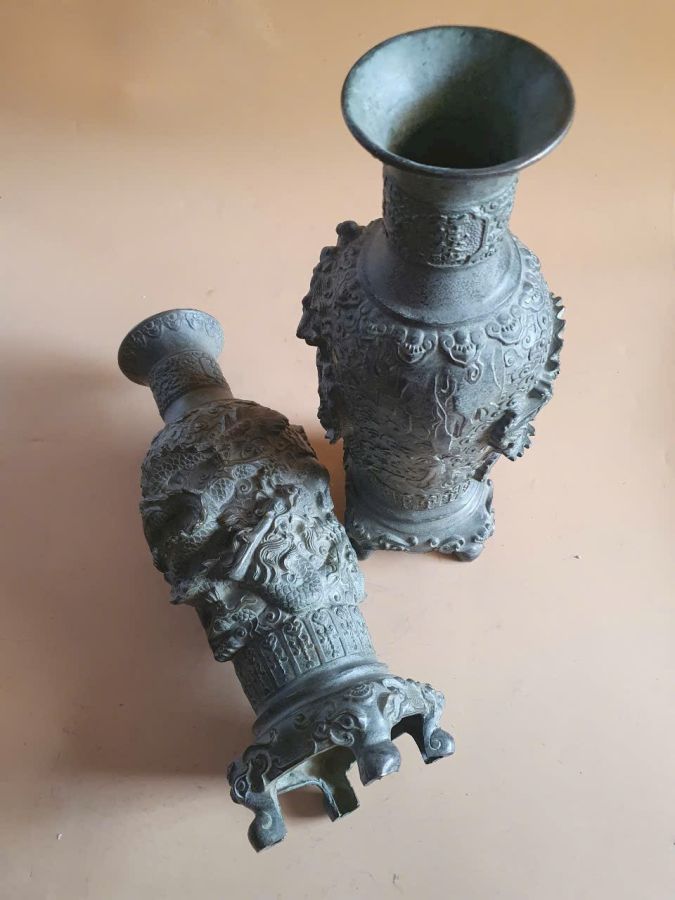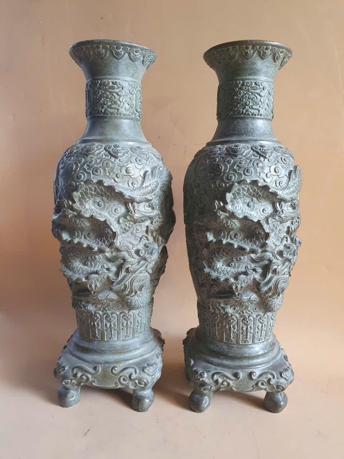 Cặp bình đồng song long.Cao 37cm*8,5cm. 5500k
