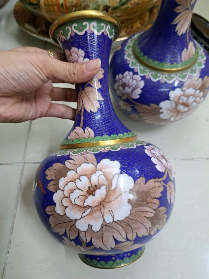 Cặp bình đồng vẽ hoa văn tuyệt đẹp