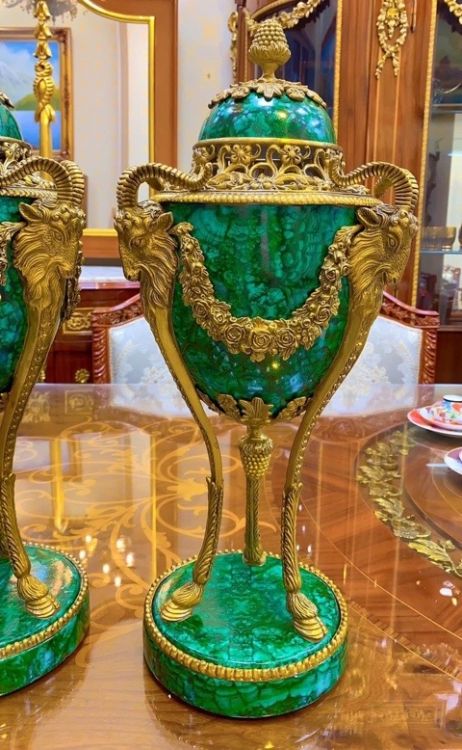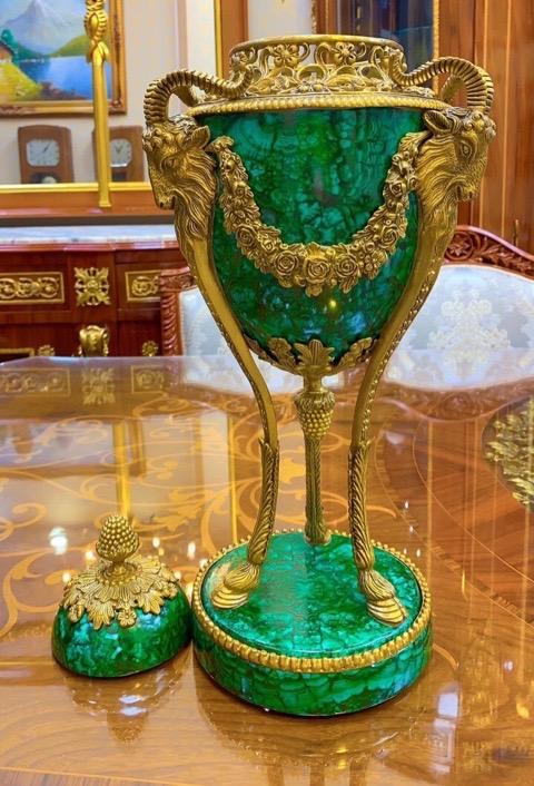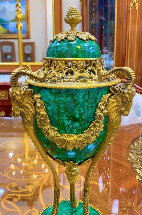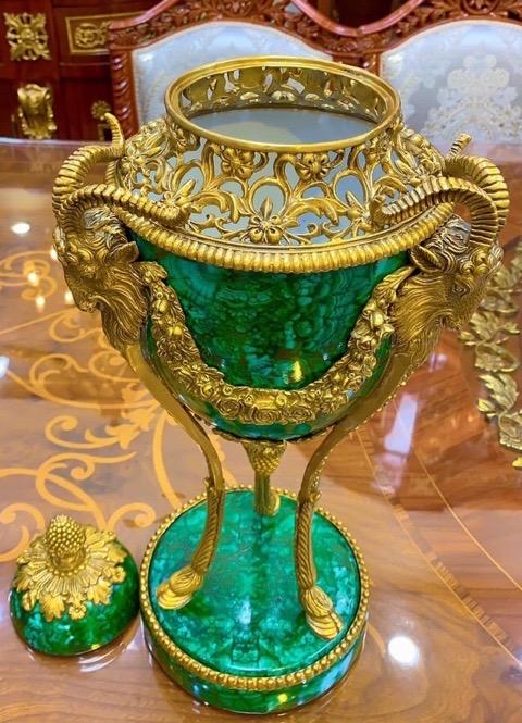 Cặp bình gốm sứ men đá malachite kết hợp hoạ tiết đồng đúc. Xuất xứ Bỉ🛎️