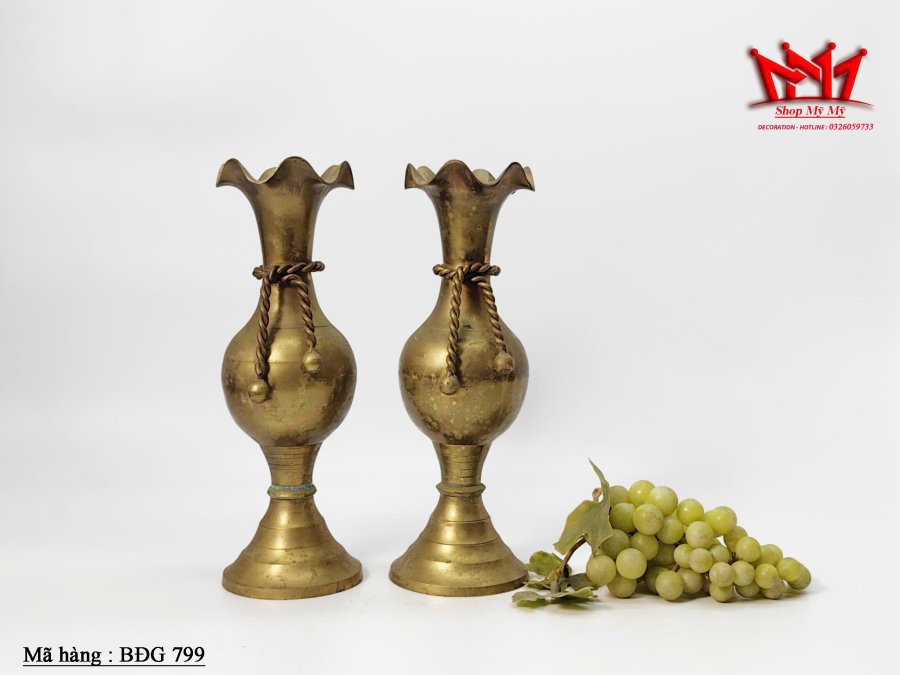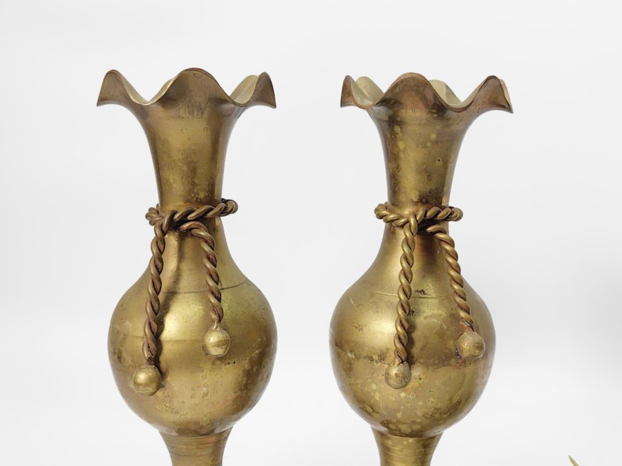 Cặp bình hoa bằng đồng thau cổ điển với nút thắt dây thừng đặc biệt