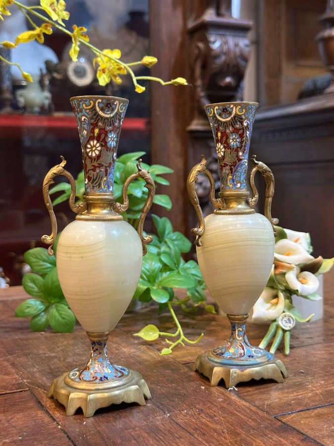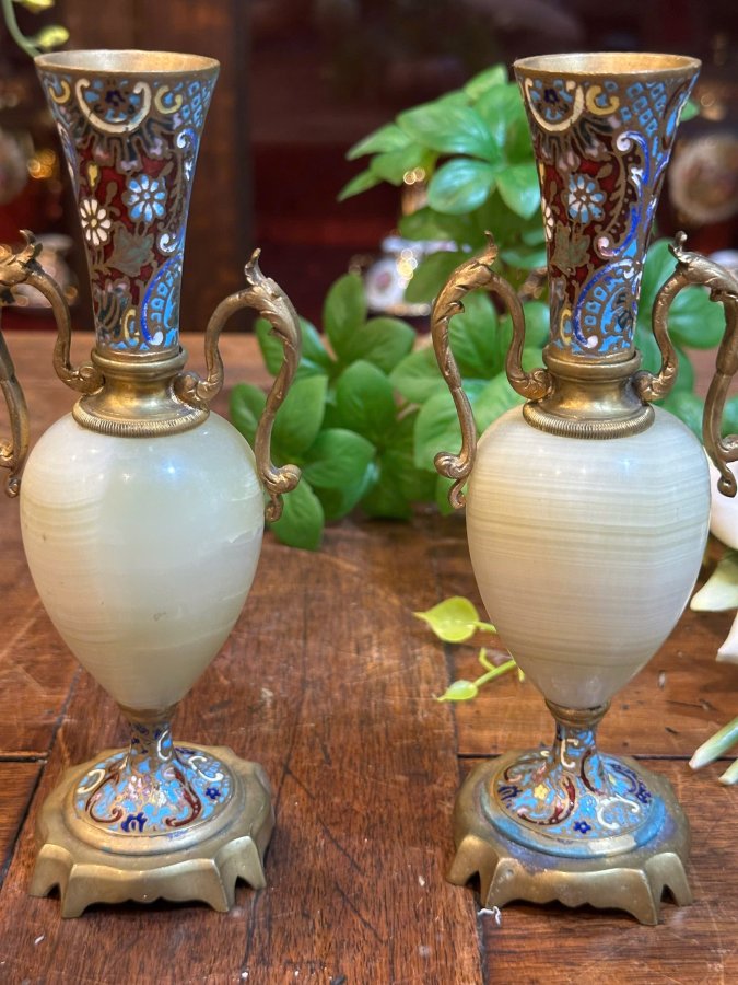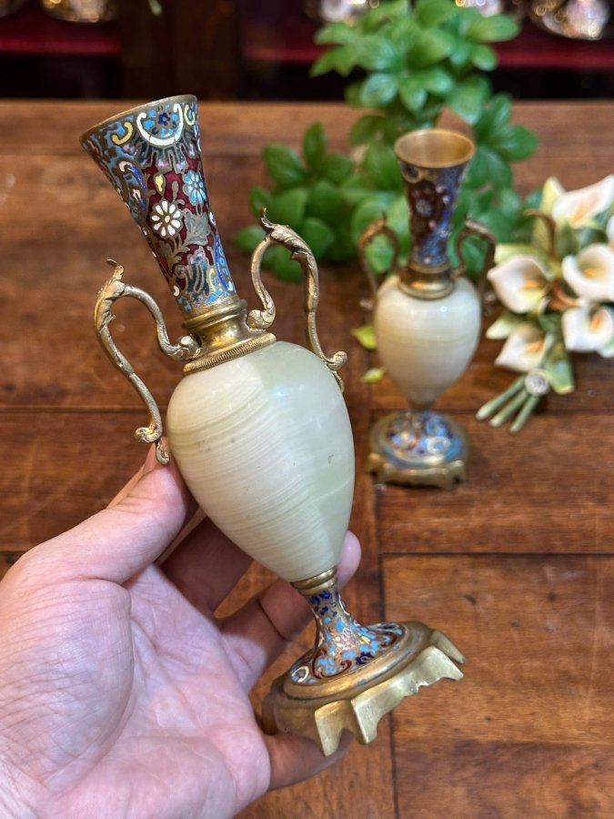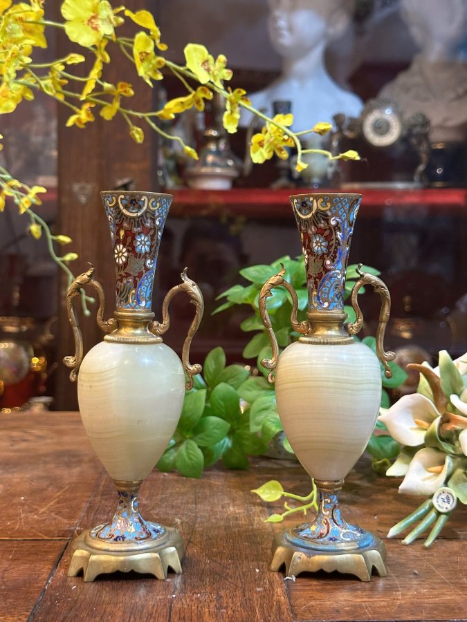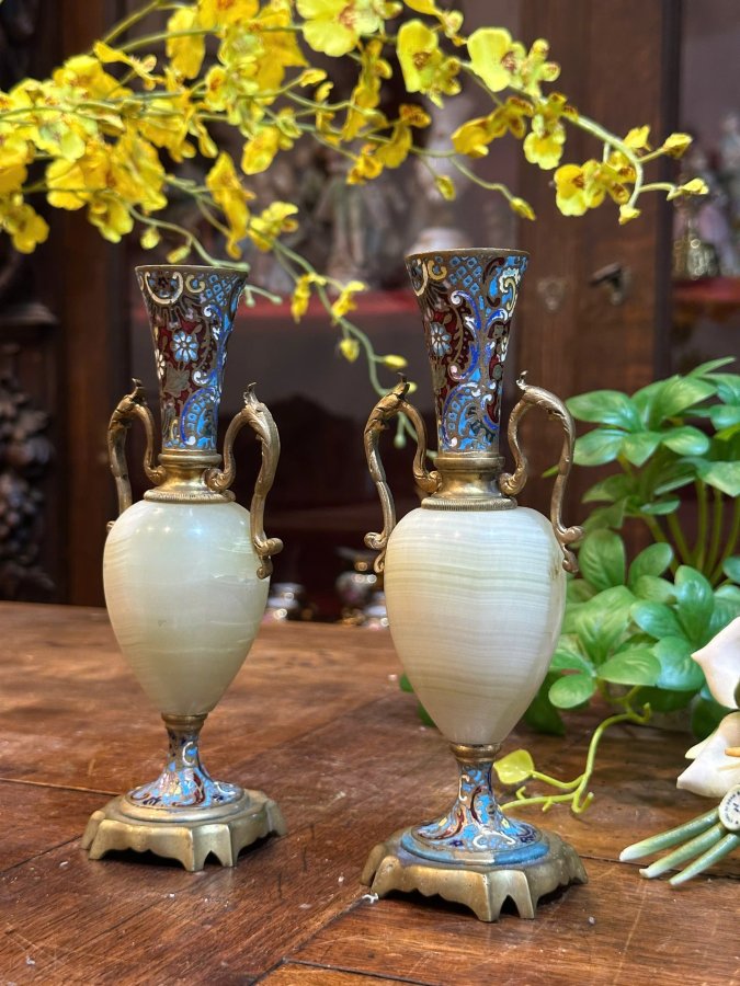 🔥🔥 Cặp Bình Pháp Lam Kết Hợp Đá Cẩm Thạch Cực Giá Trị. nhập khẩu Châu Âu 🍀🍀