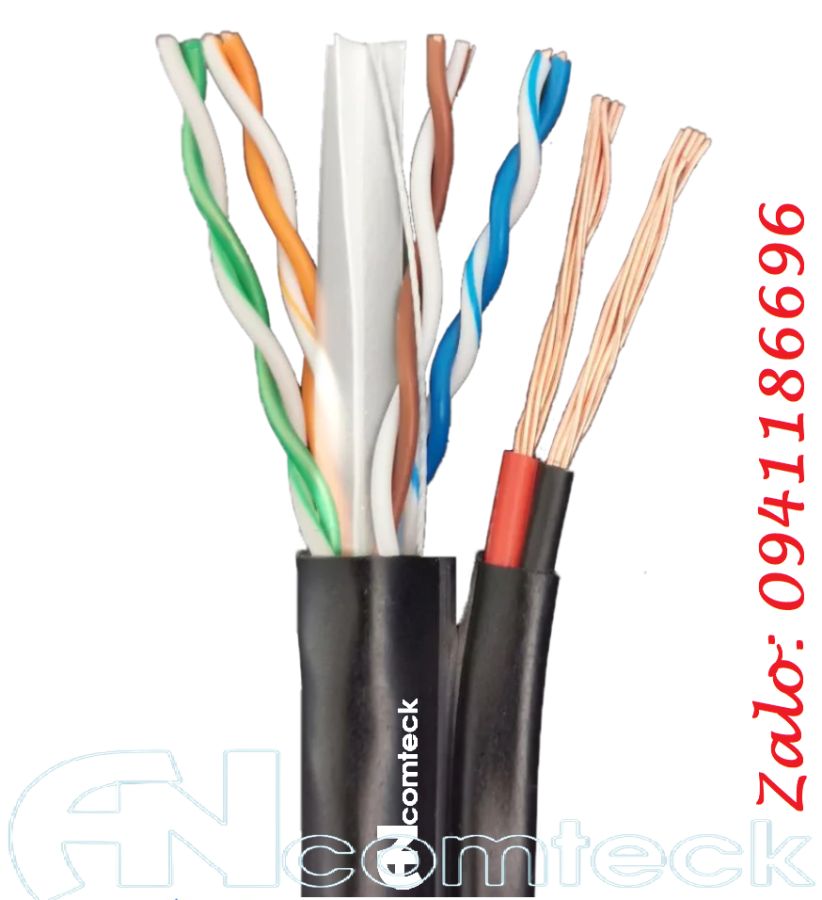 Cáp mạng liền nguồn Cat6 UTP + 2C lõi đồng liền nguồn ANCOMTECK mã ACT- 6LAN2C-305BK
