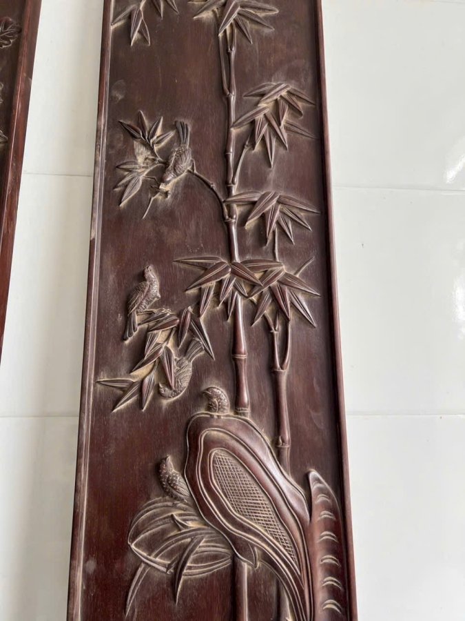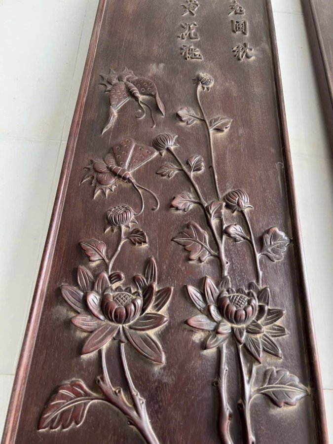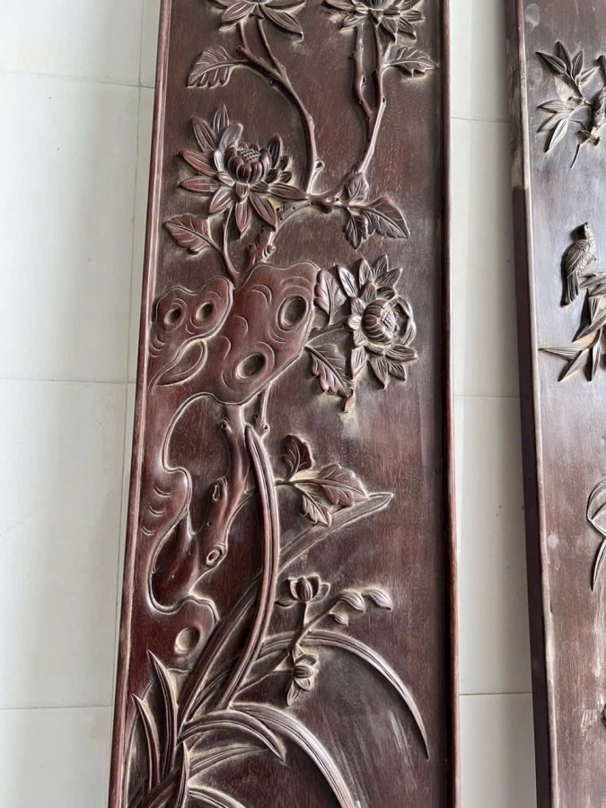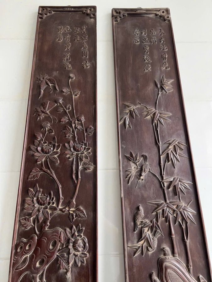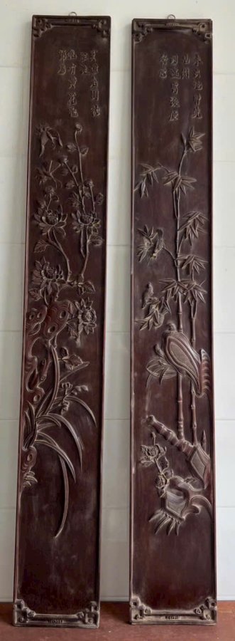 Cặp câu đối Chất liệu gỗ gụ dài 197 rộng 27 dày 3 cm