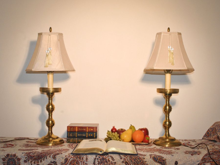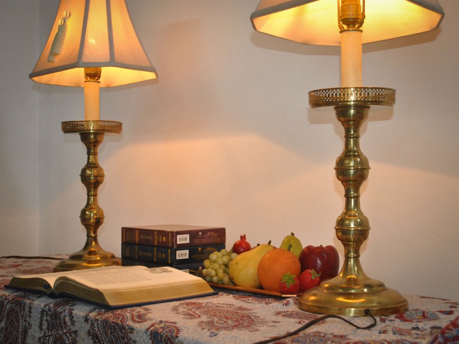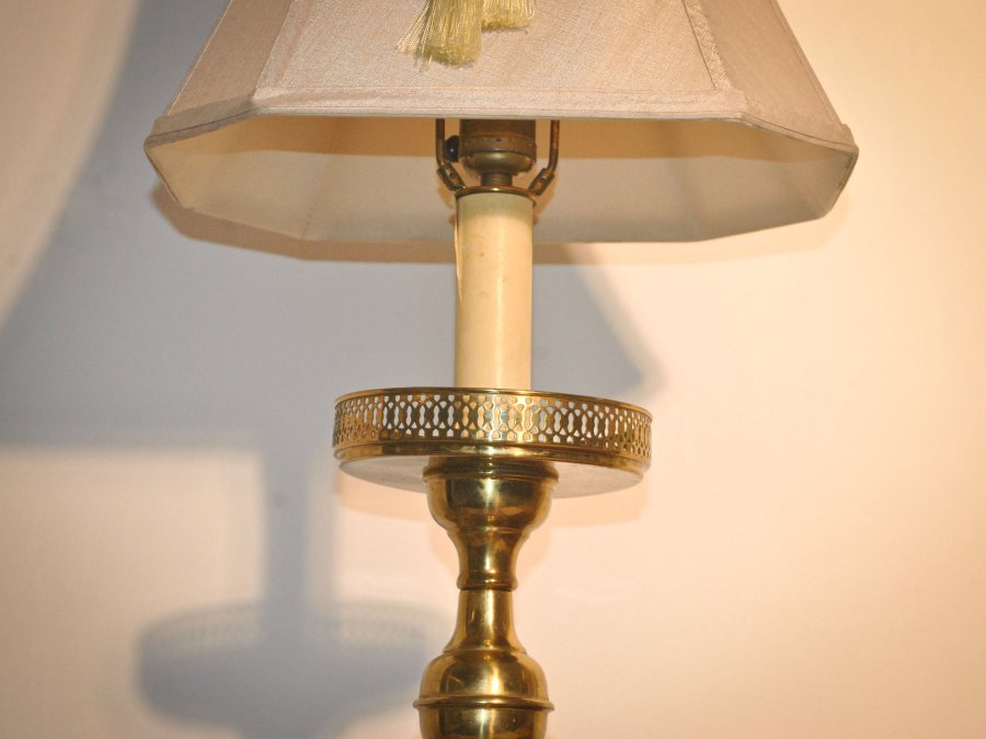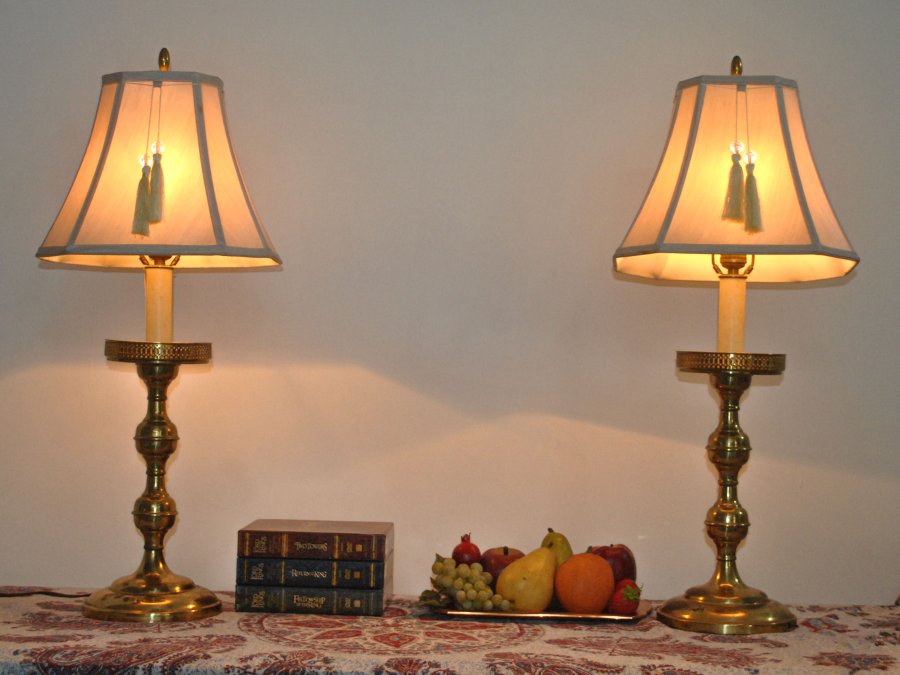 Cặp chân đèn bằng đồng đậm nét cổ điển, hàng sưu tầm từ Mỹ.
