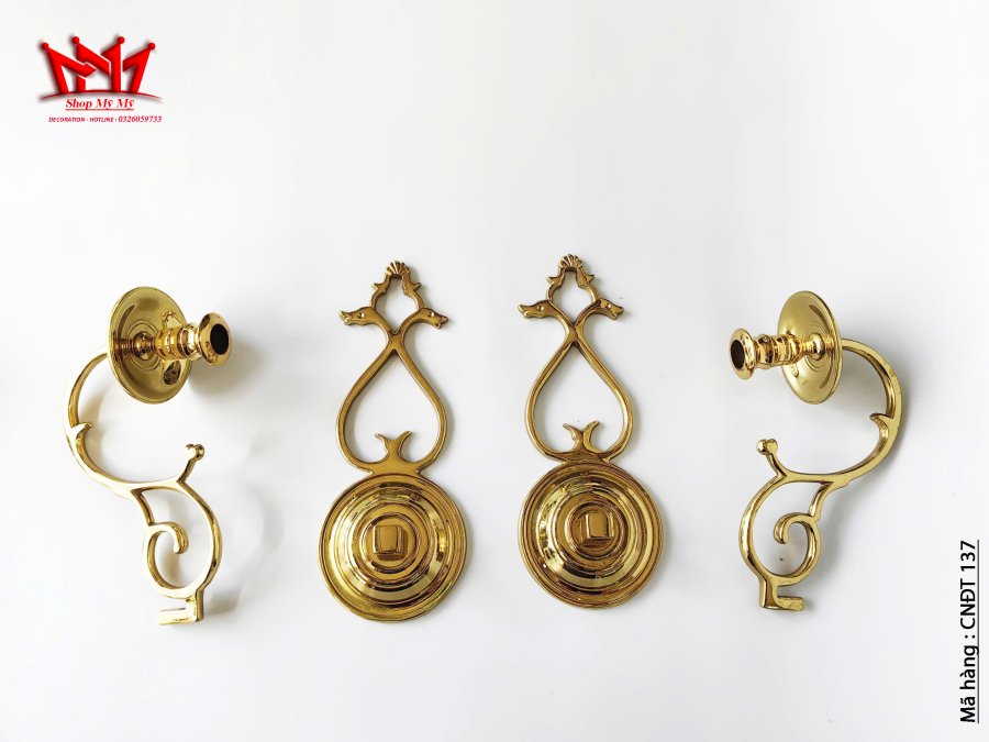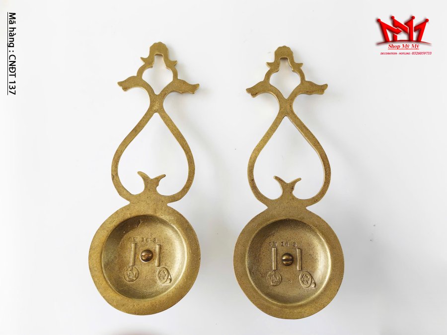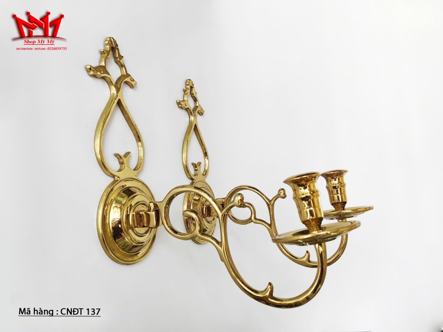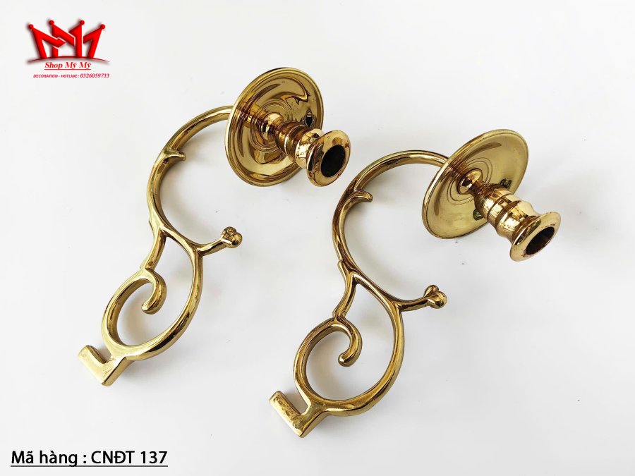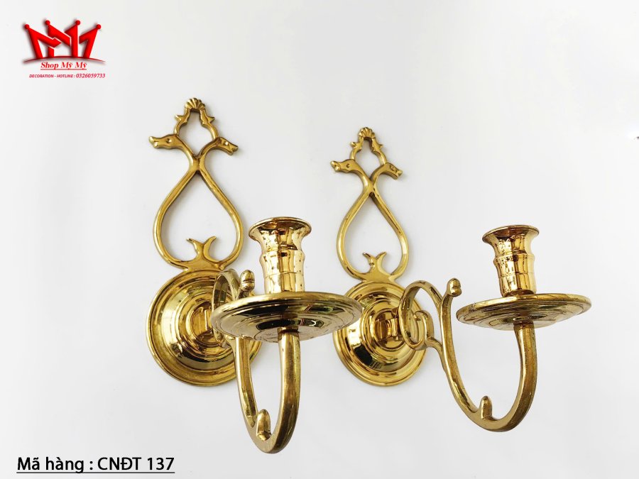 Cặp chân đèn nến gắn tường bằng đồng cổ điển