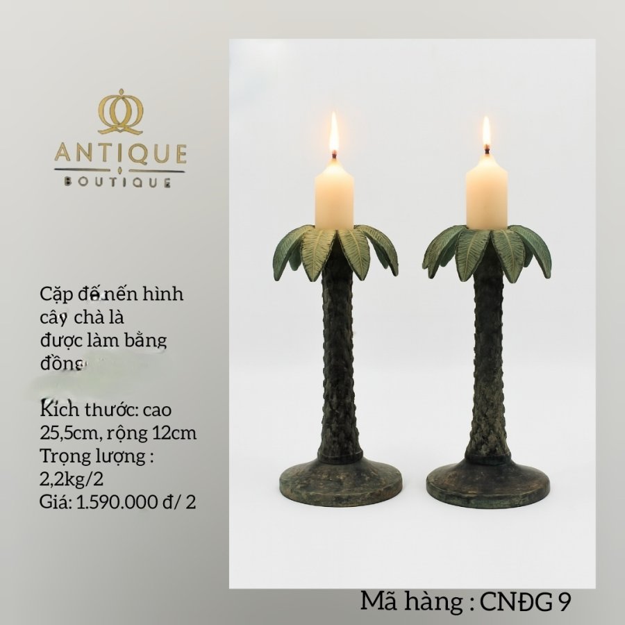 Cặp để nến hình cây chà là đồng, được làm bằng Kích thước: cao 25,5cm, rộng 12cm.Trọng lượng : 2,2kg/2. Giá: 1.590.000 ₫/2. Mã hàng : CNĐG 9