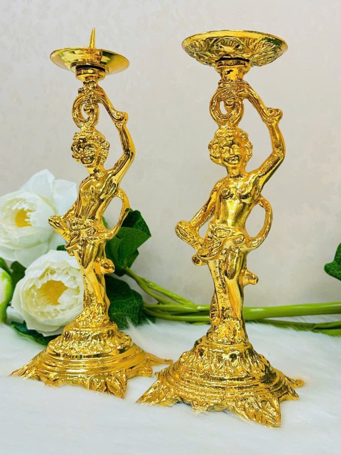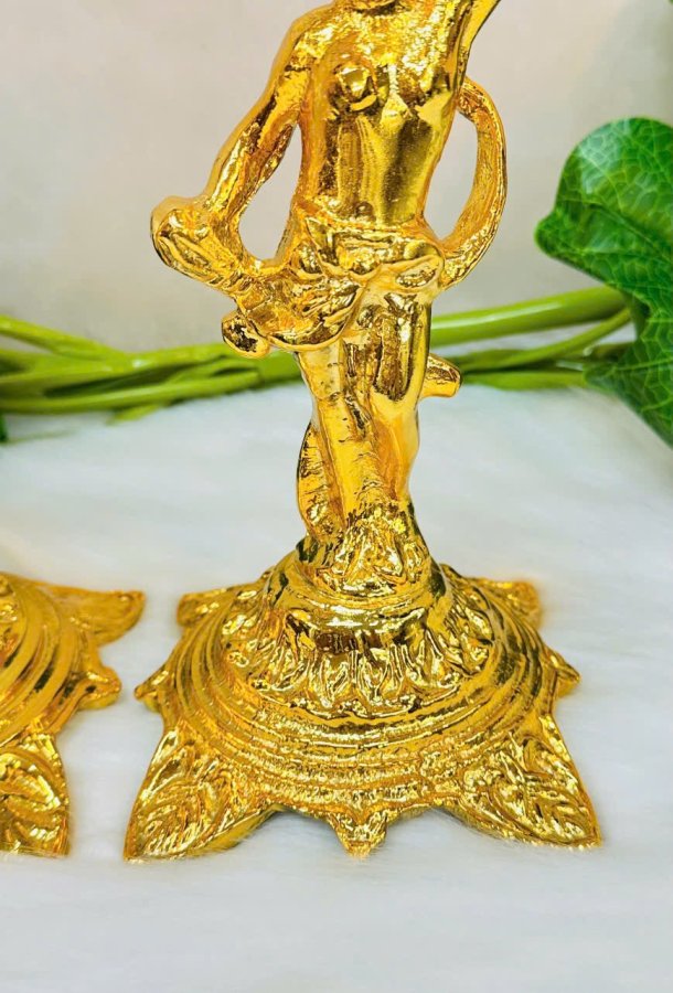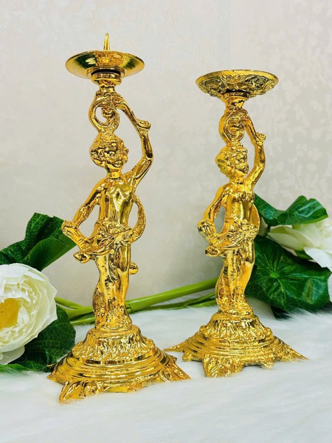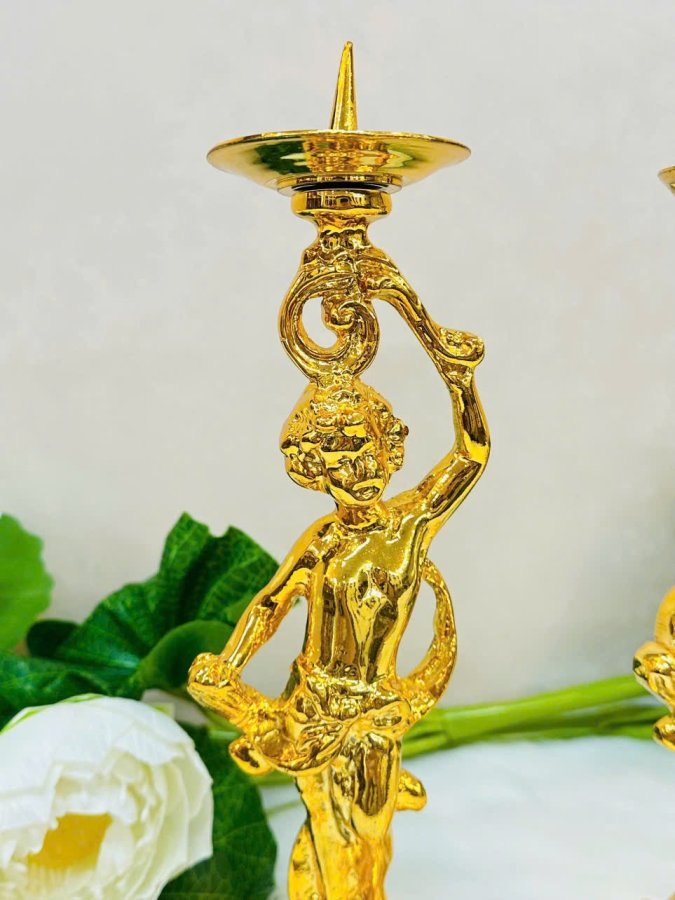 Cặp chân nến baby Châu Âu cổ điển - Chất liệu đồng mạ vàng - Dùng decor rất đẹp Cao 32 cm Kính mời các bác