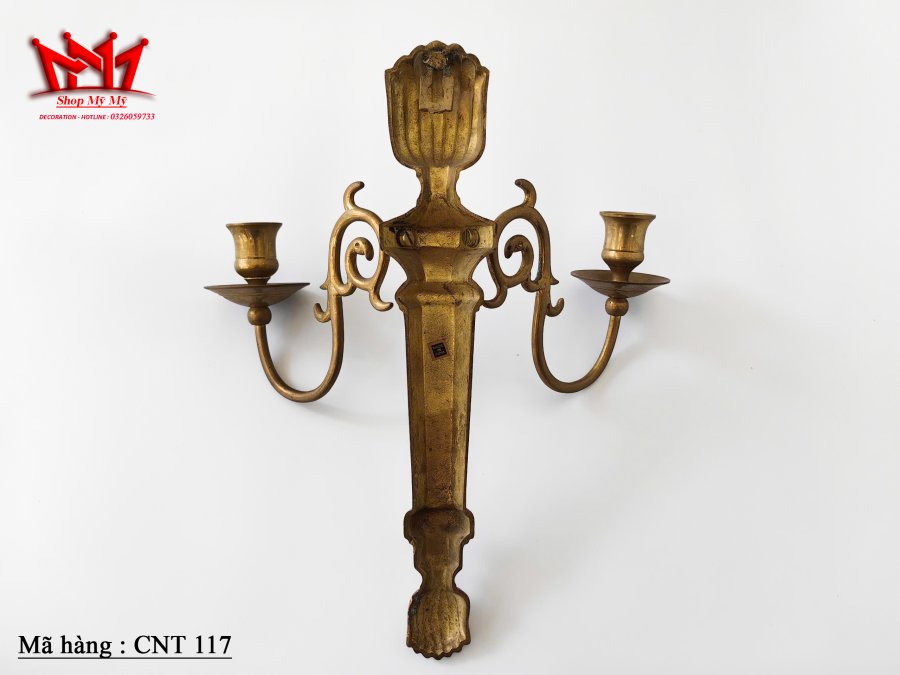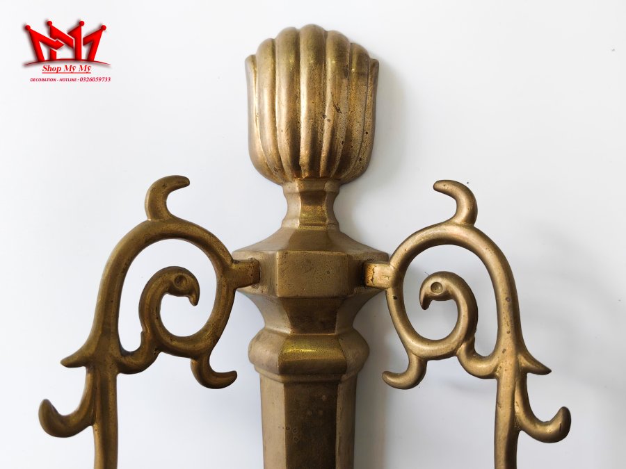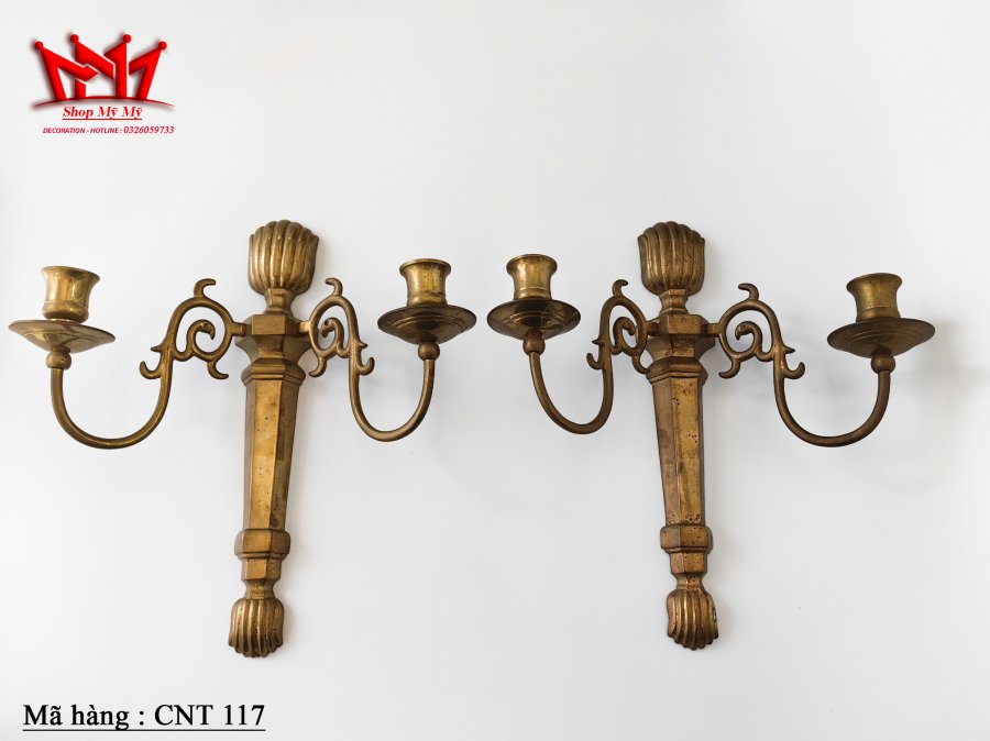 Cặp chân nến gắn tường được làm bằng đồng.
